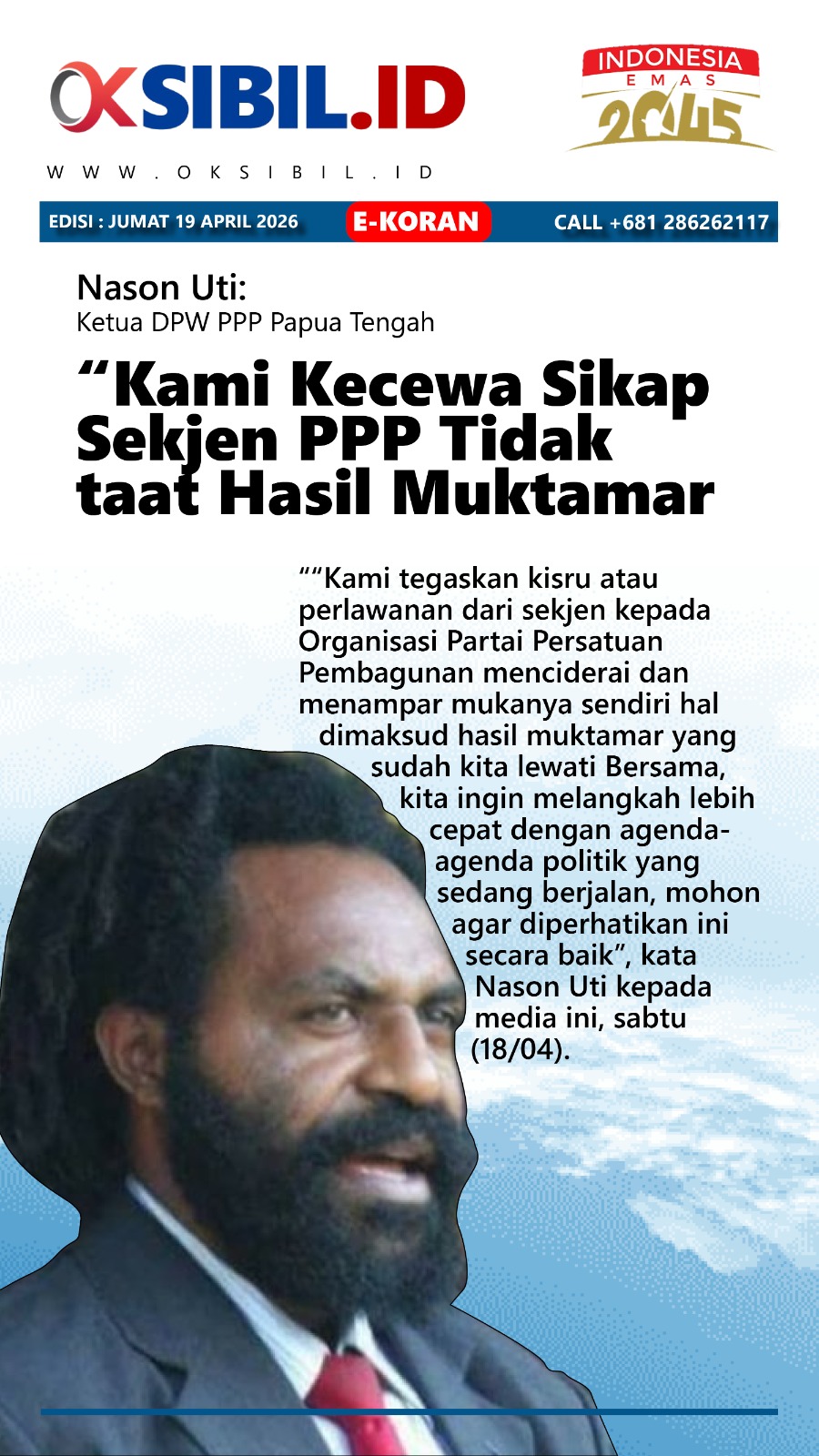 Nasional Ketua DPW PPP Papua Tengah Kecewa Sikap Sekjen PPP Tidak taat Hasil Muktamar
